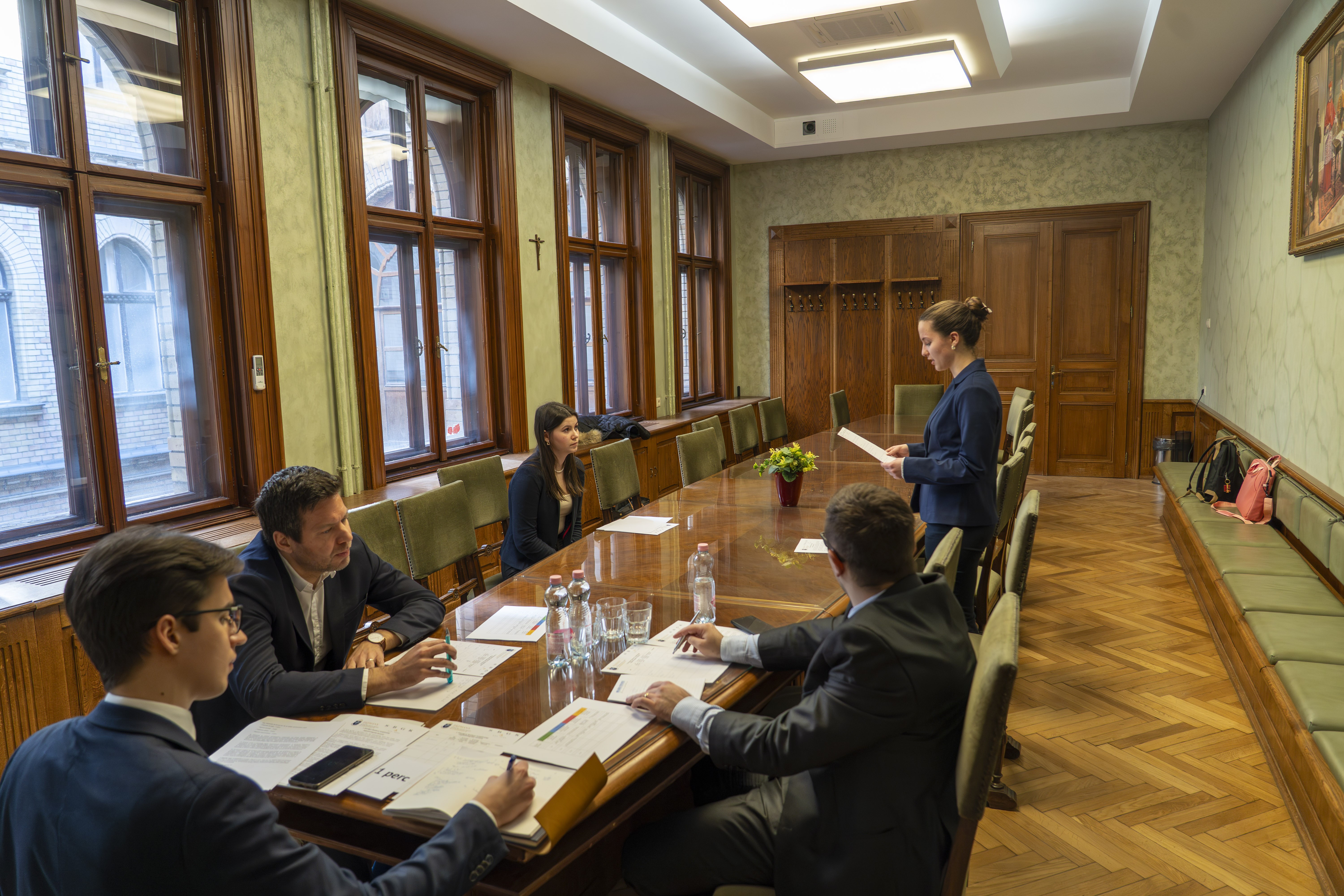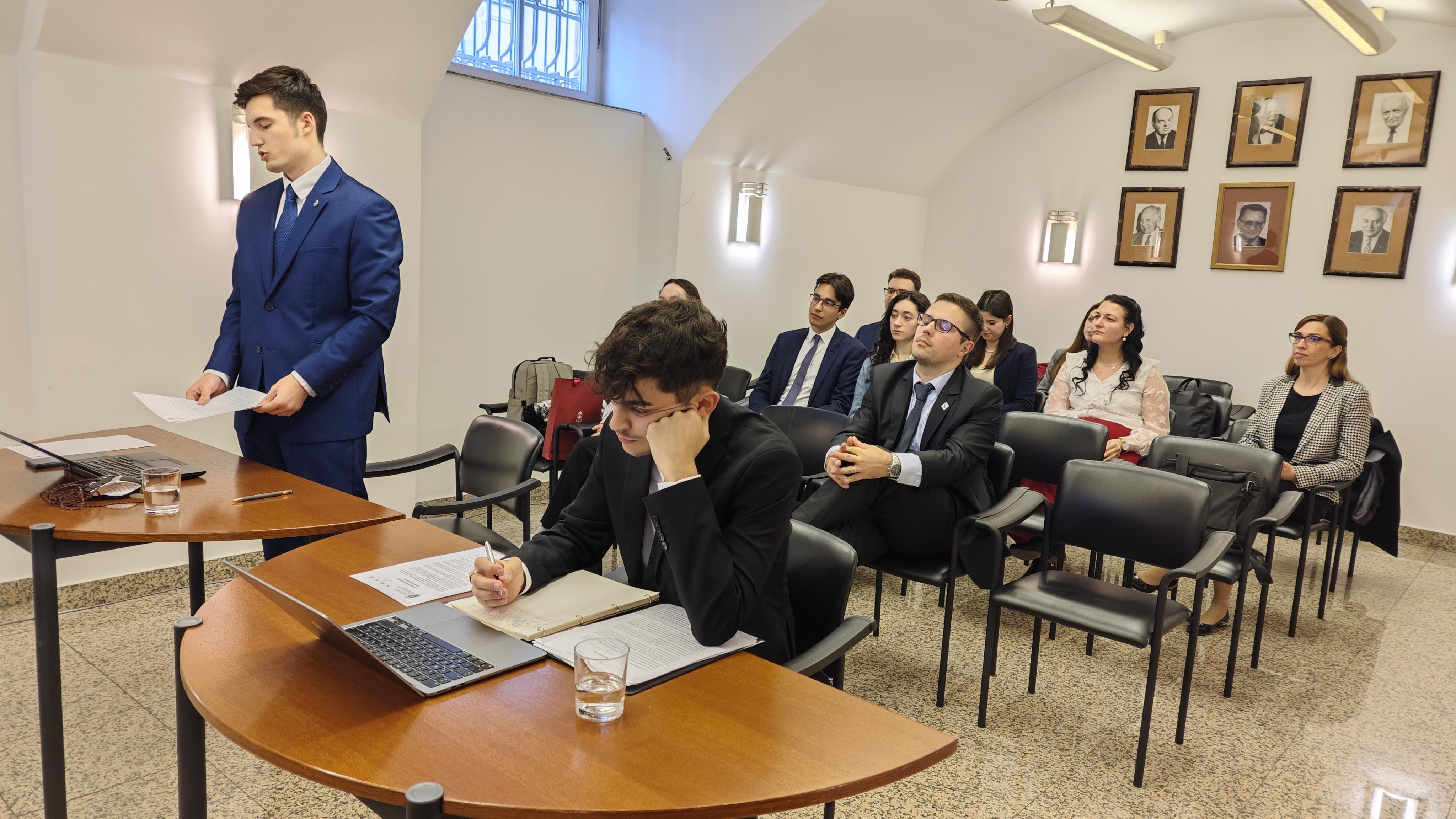 A délelőtti elődöntők a PPKE JÁK 4 termében, párhuzamosan zajlottak háromtagú bírálóbizottságok előtt, amelyekben a ME, a SZE DFK, a BME és a PPKE oktatói, valamint az SBGK ügyvédei vettek részt.